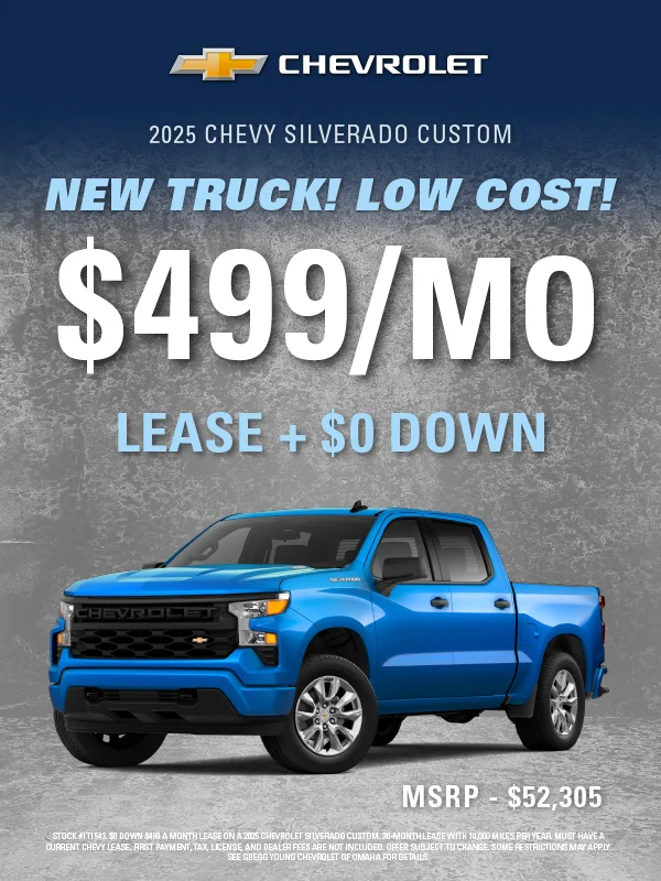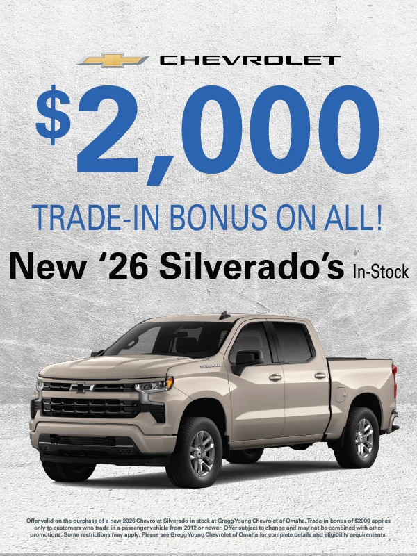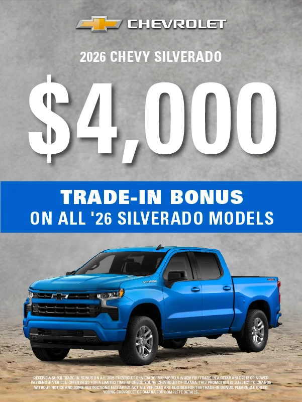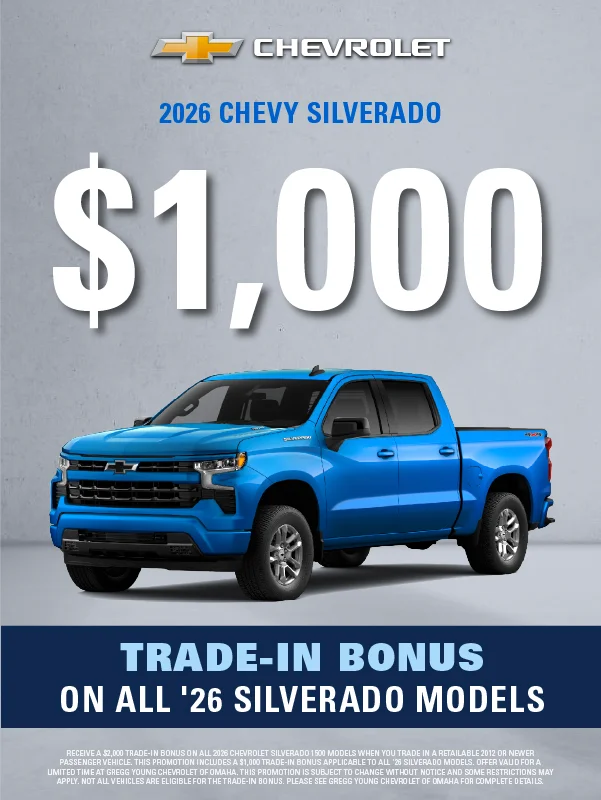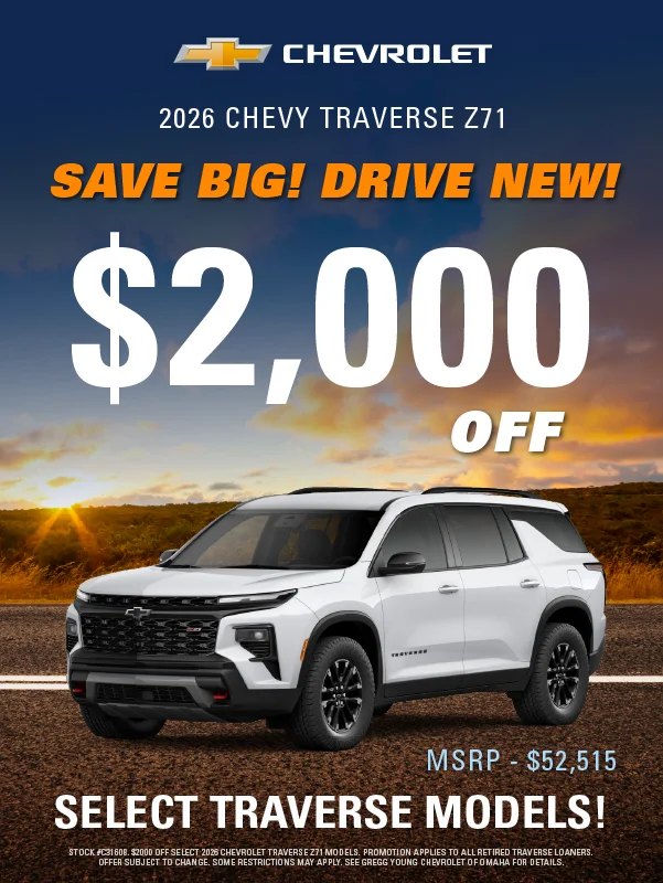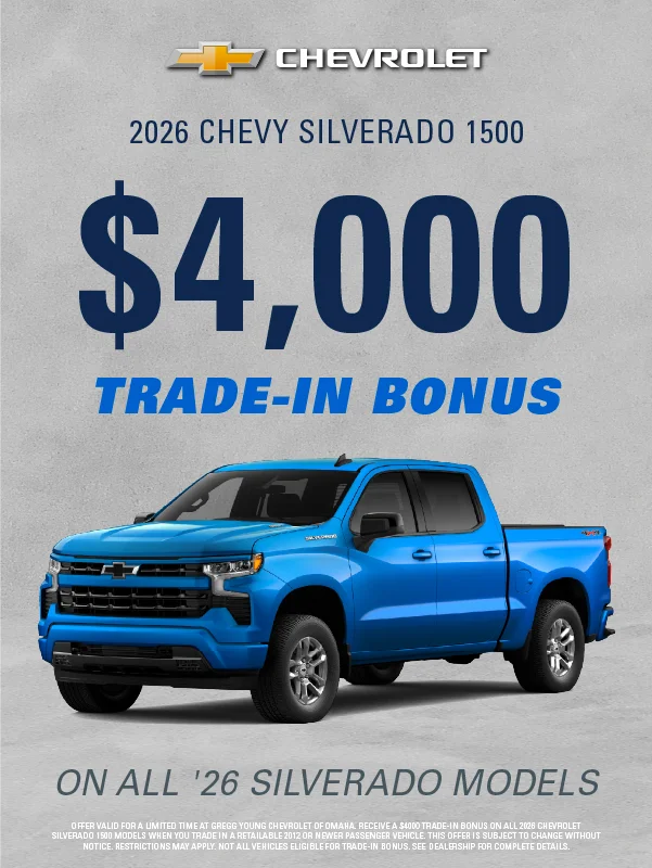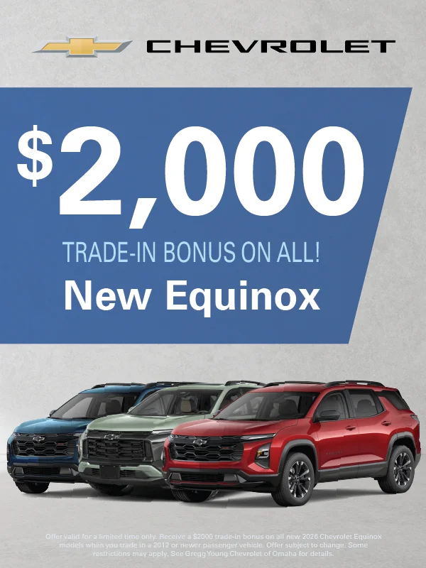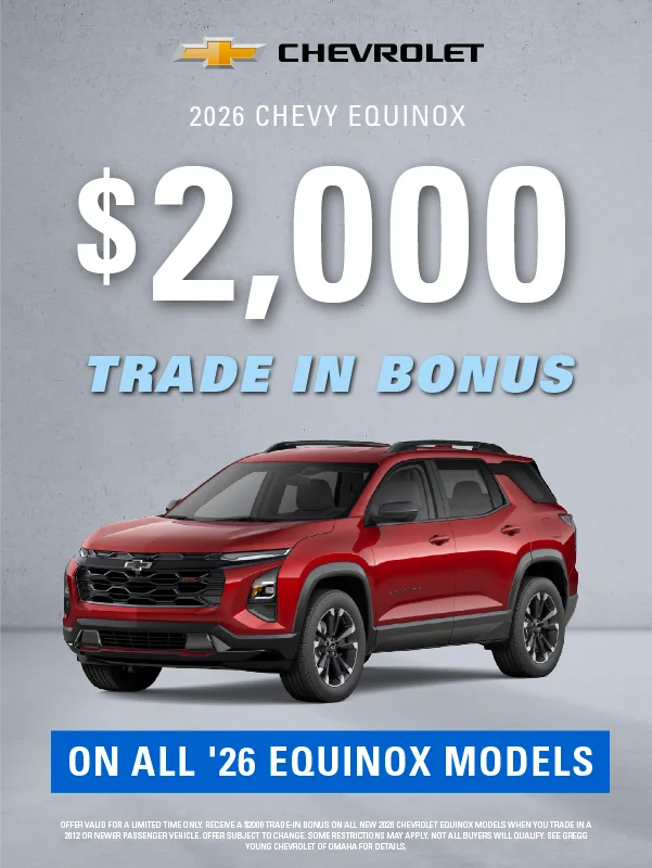 At Gregg Young Chevrolet of Omaha, we’re proud to be the go-to Chevy dealer in Eastern Nebraska, offering a complete lineup of new Chevrolet cars, trucks, and SUVs, plus a diverse selection of used and certified pre-owned vehicles. Conveniently located near I-80, our dealership combines big-city inventory with small-town service, giving you the best of both worlds.