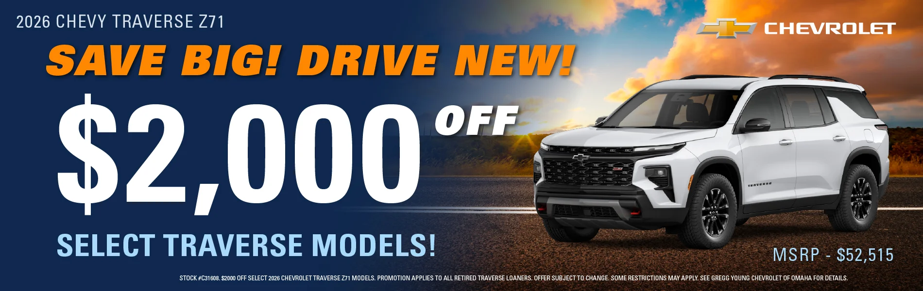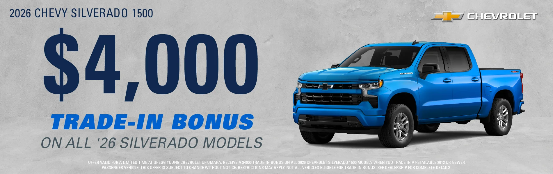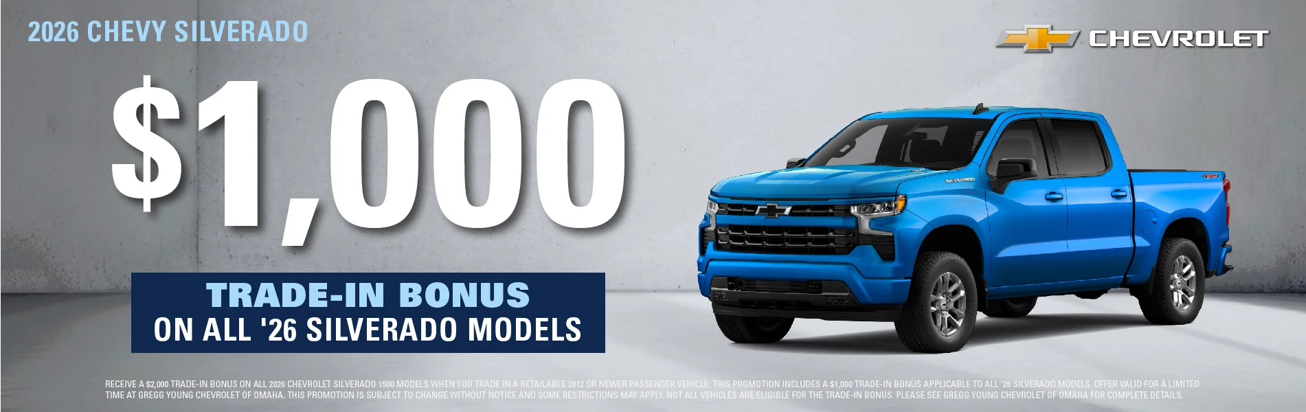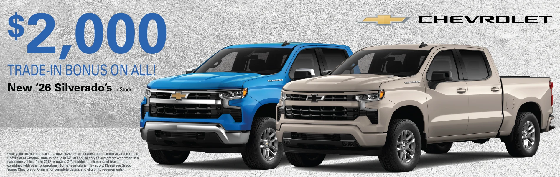 At Gregg Young Chevrolet of Omaha, we’re proud to be the go-to Chevy dealer in Eastern Nebraska, offering a complete lineup of new Chevrolet cars, trucks, and SUVs, plus a diverse selection of used and certified pre-owned vehicles. Conveniently located near I-80, our dealership combines big-city inventory with small-town service, giving you the best of both worlds.
