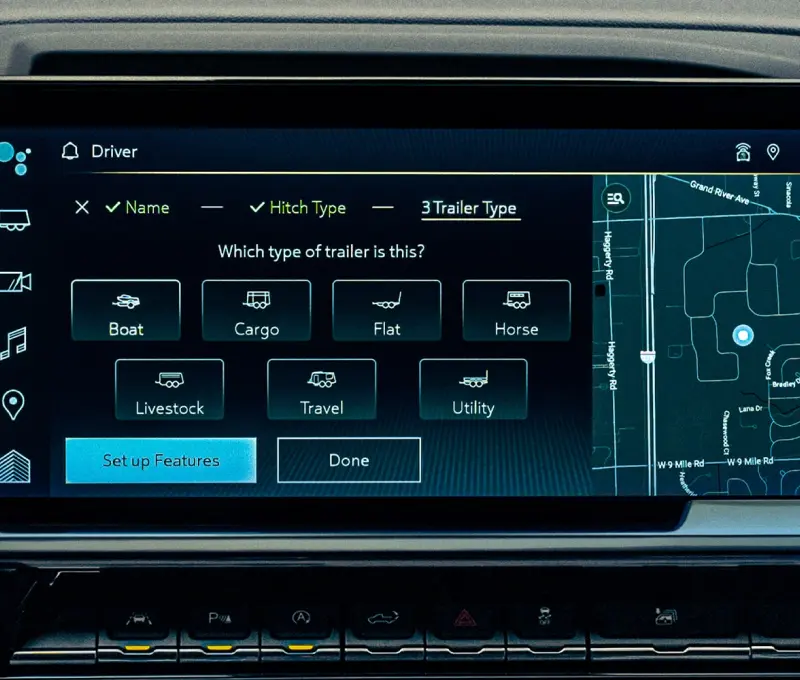 A class-largest, fully-integrated touchscreen puts ultimate control in your hands. View 15 camera angles simultaneously, manage advanced trailering functions, and navigate with crystal-clear clarity, all while your payload is digitally monitored in real-time.